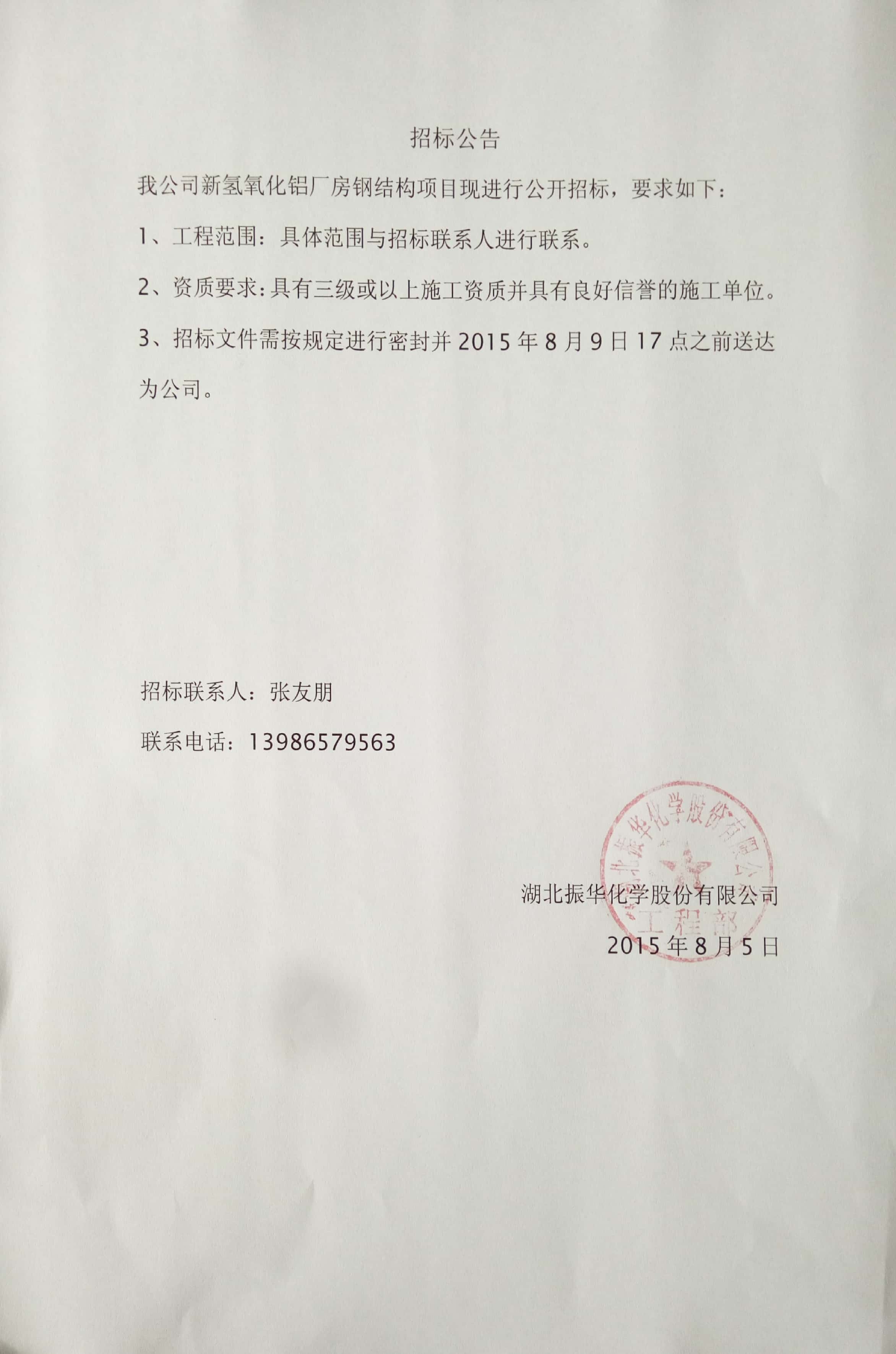 含鉻鋁泥綜合利用項(xiàng)目氫氧化鋁廠房鋼結(jié)構(gòu)項(xiàng)目招標(biāo)公告